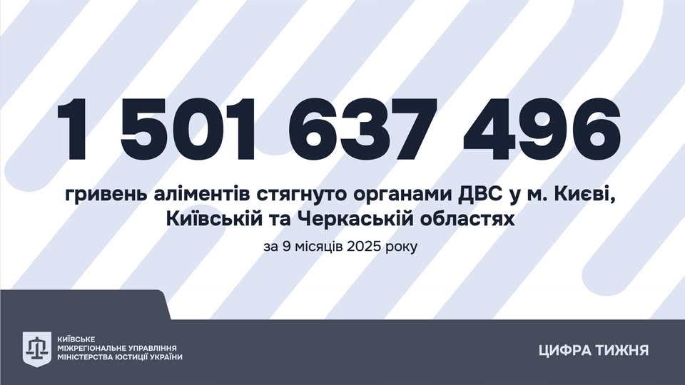 З початку року органи ДВС Київського міжрегіонального управління Міністерства юстиції України стягнули понад 1,5 мільярда гривень аліментів на користь дітей.